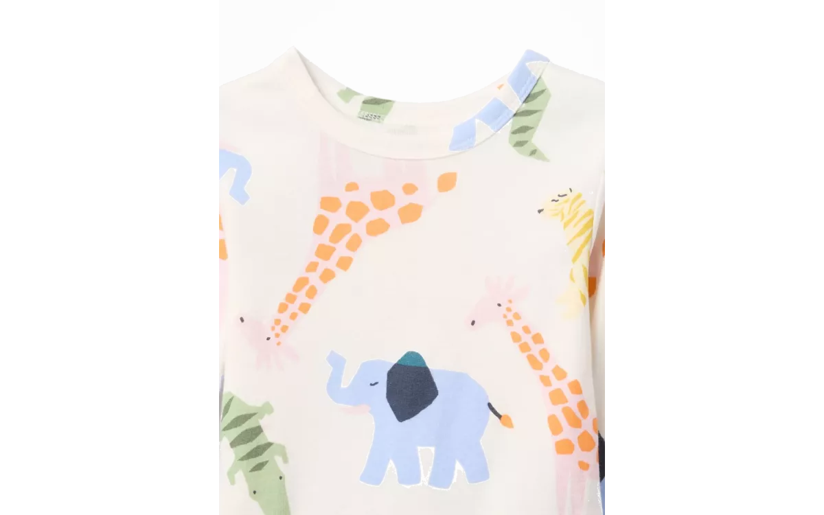 - A gyerekeknek készült pizsama szett organikus pamutból készült safari motívummal ötvözi a természetes anyagot, kényelmet és biztonságot a nyugodt alváshoz.