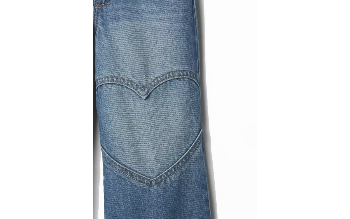 - Lányoknak készült farmernadrág hímzett szívecskékkel és széles lábakkal, egyedi stílust kölcsönöz a kényelemre és a fenntartható fejlődésre koncentrálva.