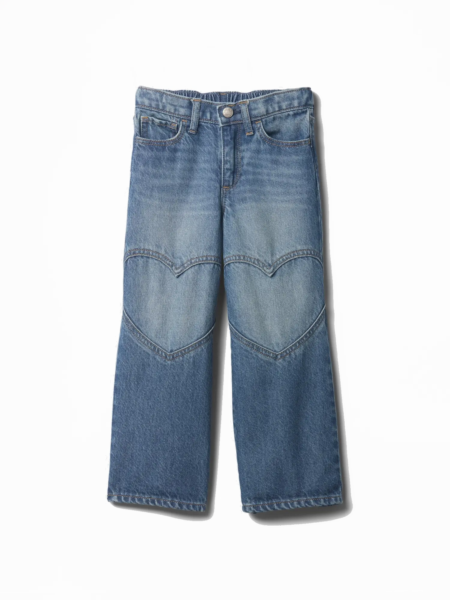 - Öt zsebész klasszikus fazon, a lábakon hímzett szívecskékkel, amelyek bájos megjelenést adnak a farmernek.