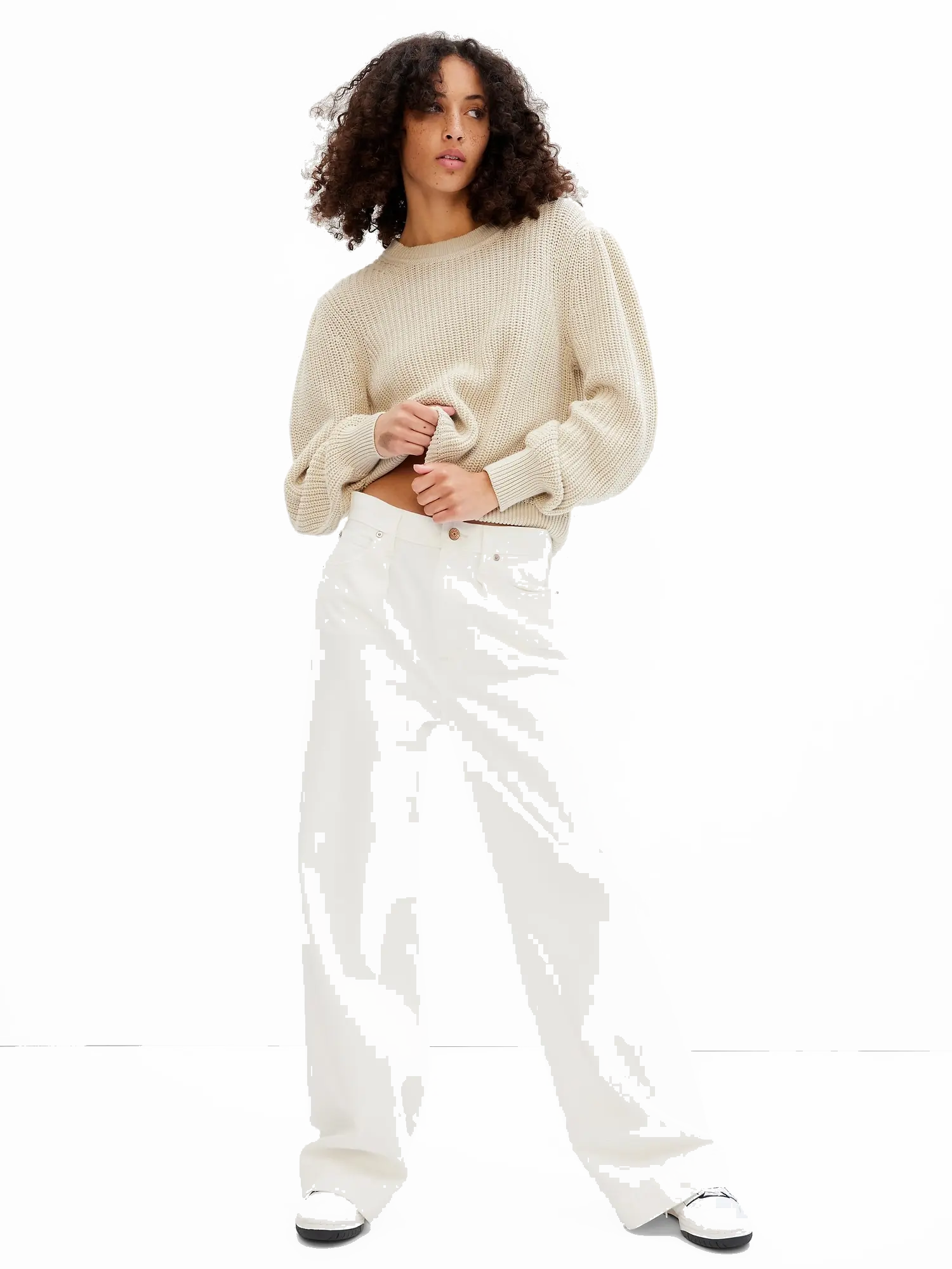 • Hosszú ballonujjú ujjú pulóver.