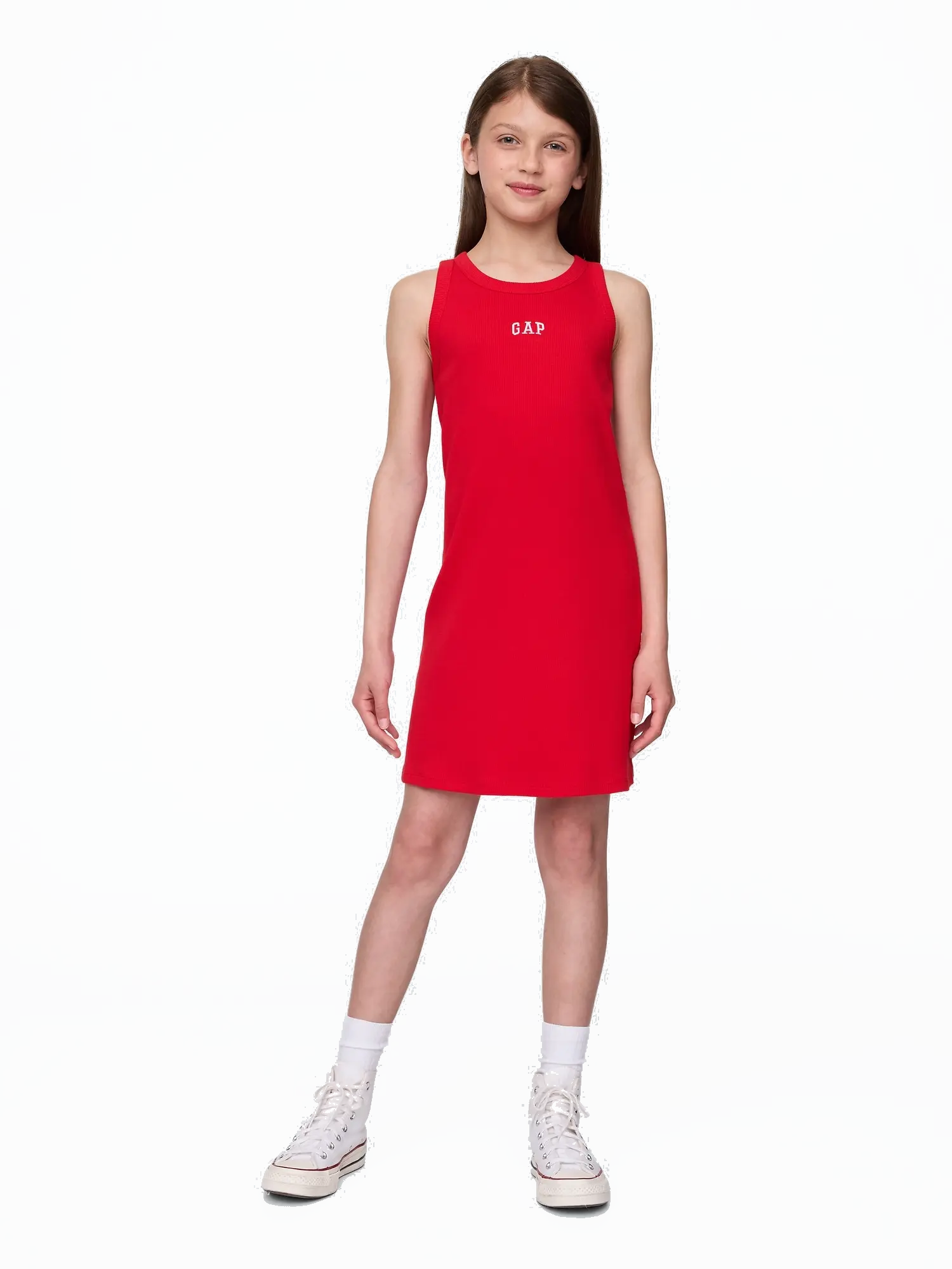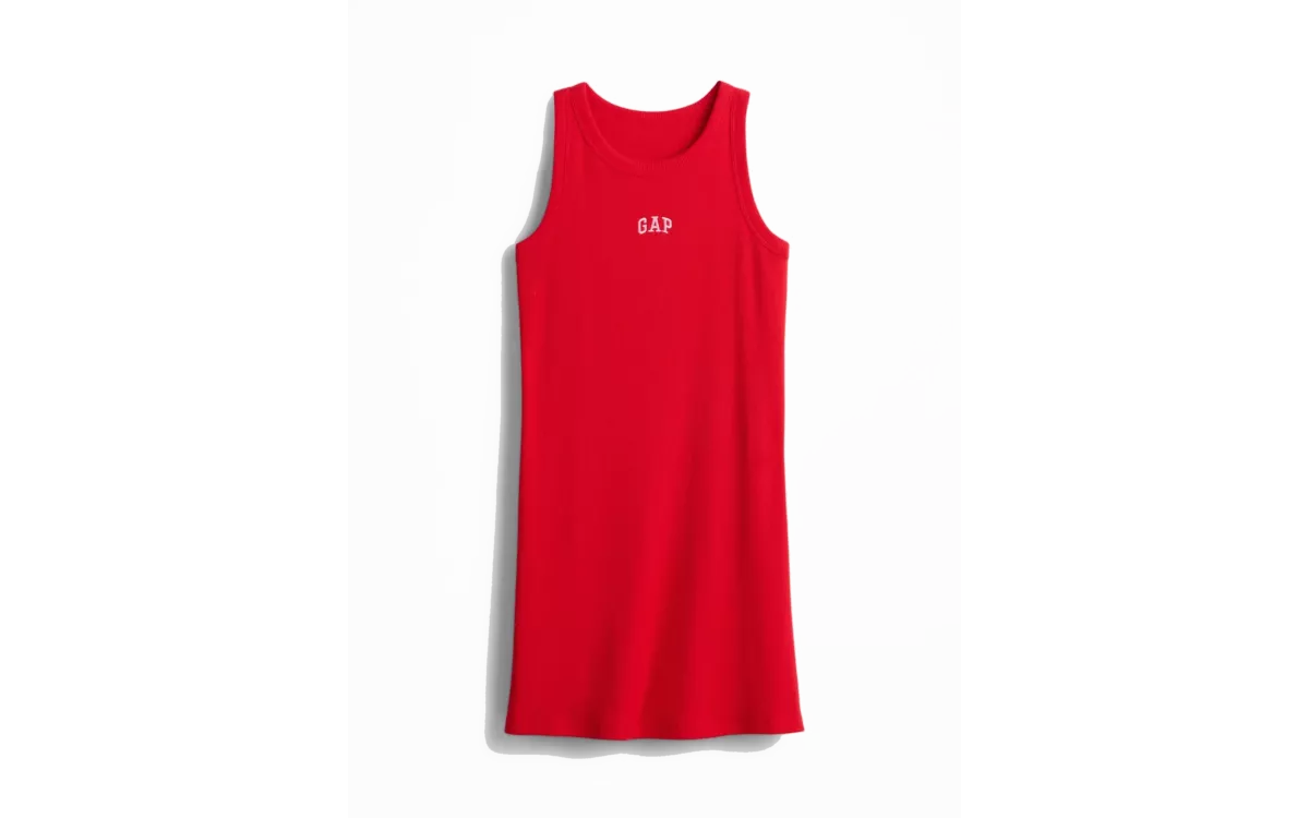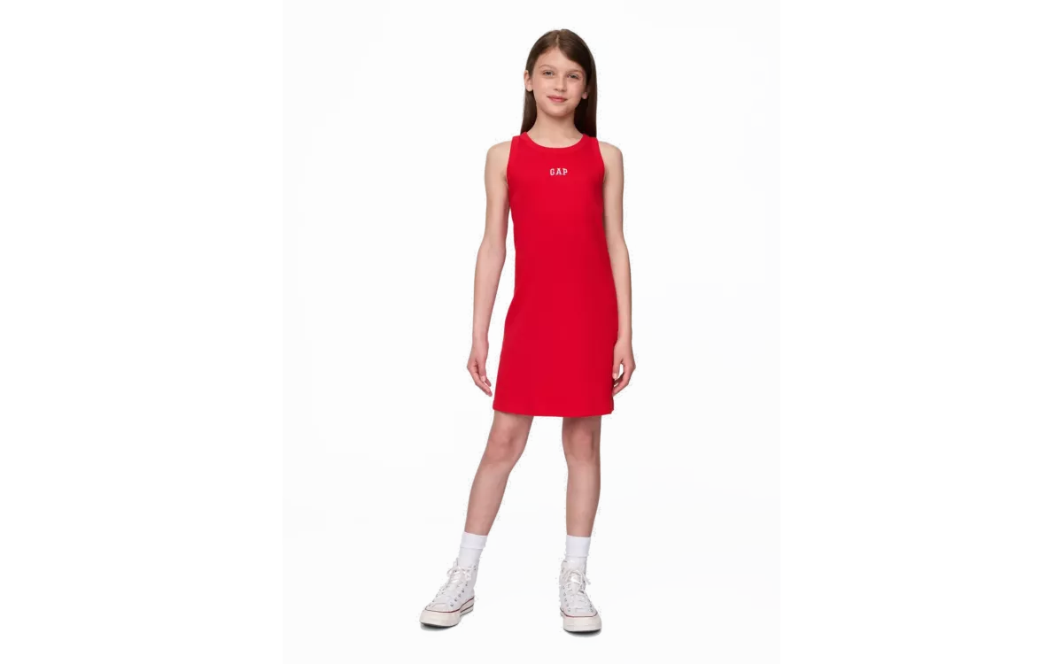 - Lányos csíkos pamutruha ujjatlan kivágással a Gap logóval, ideális választás napfényes napokra tele mozgással.