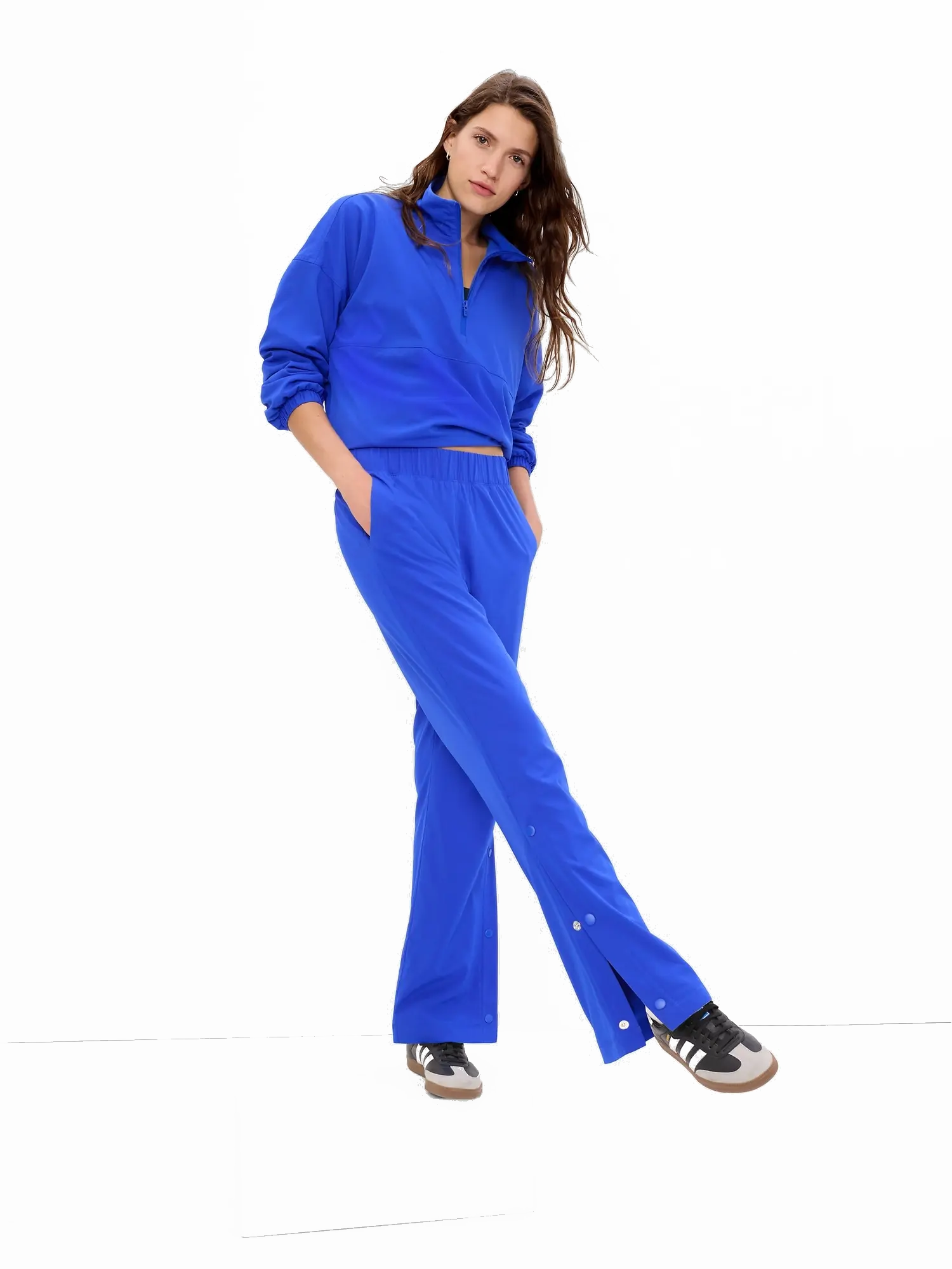 - Gładkie nylonowe spodnie z przytulną polarową podszewką.