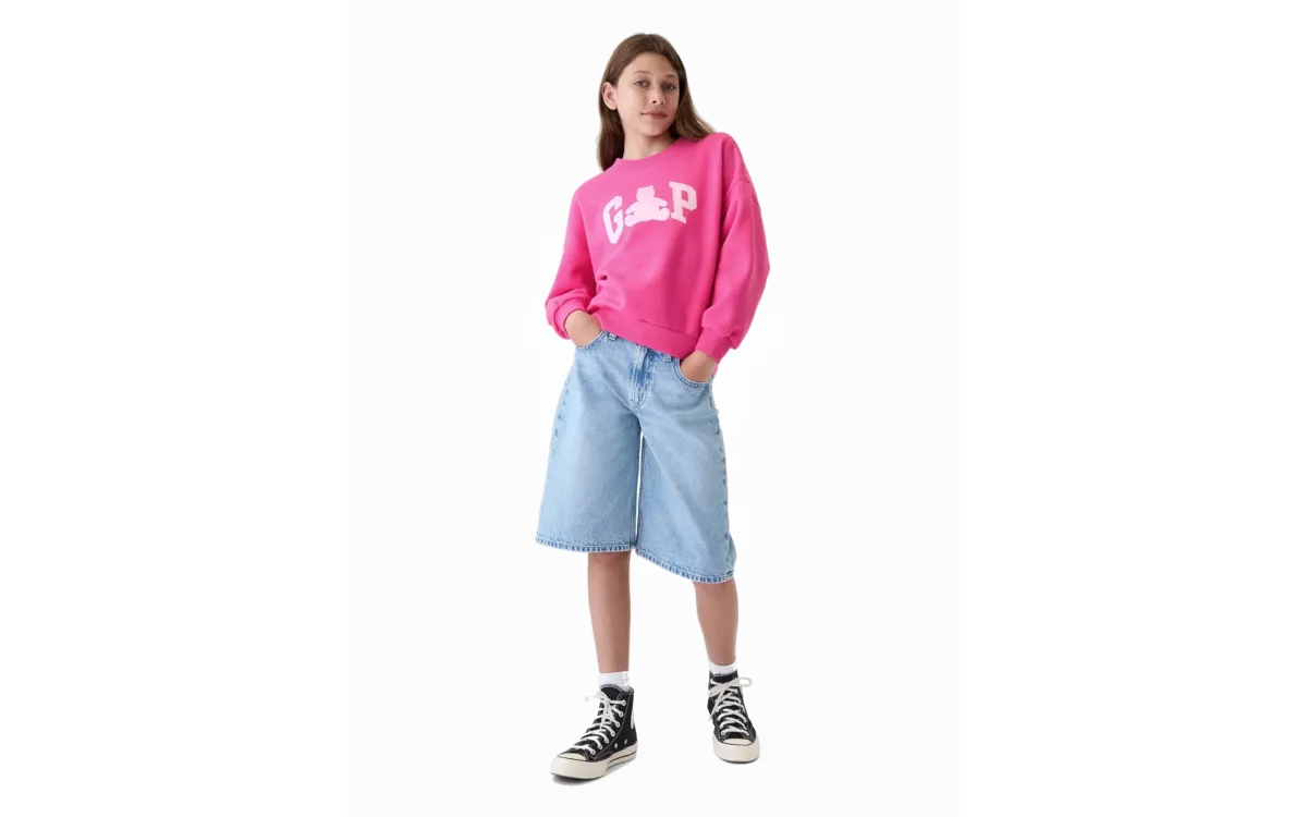 - Elöl a Gap ikonikus logója Brannan medvével a grafikán.