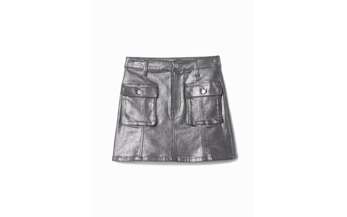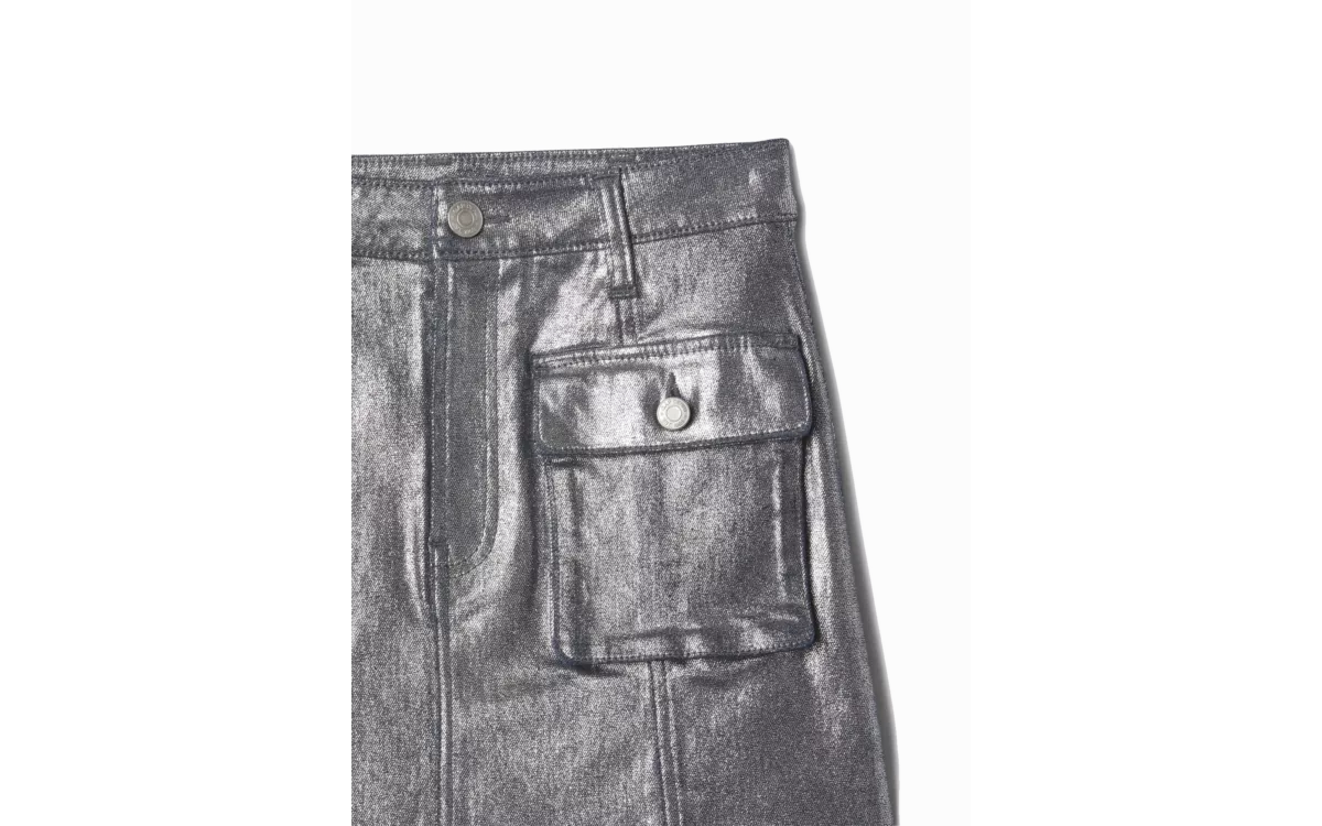 - Sima, rugalmas farmer szoknya fényes felülettel és cargo zsebekkel.