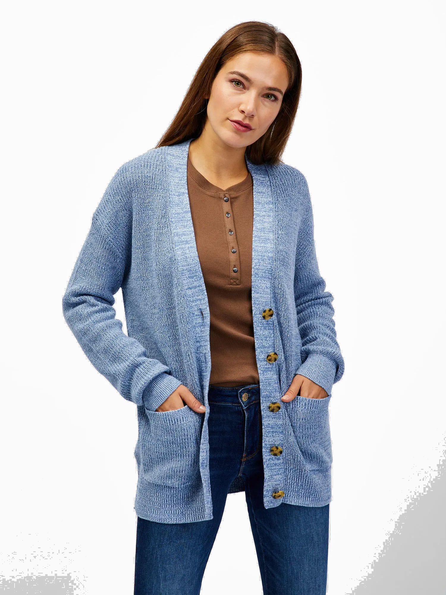 • Női kardigán zsebekkel.