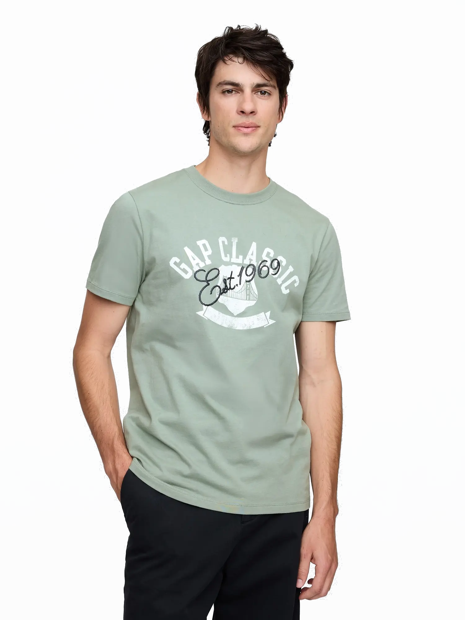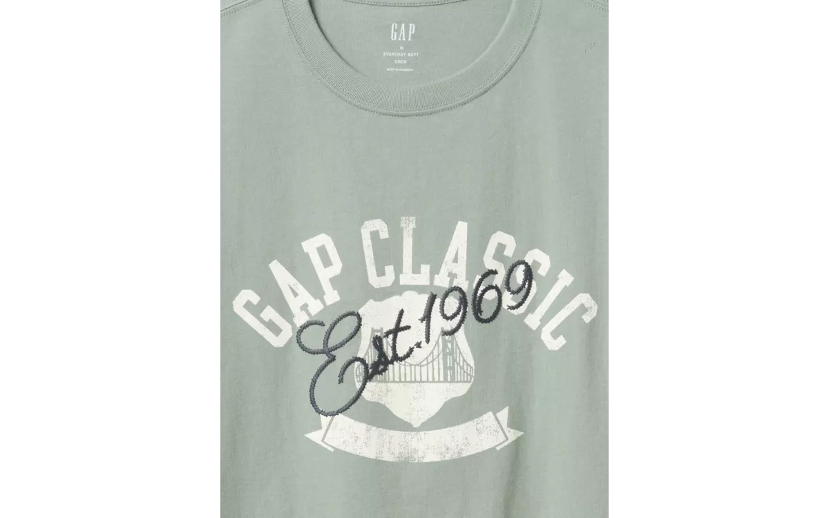 - A póló elején a Gap Classic grafika található, amely időtlen és elegáns megjelenést kölcsönöz.