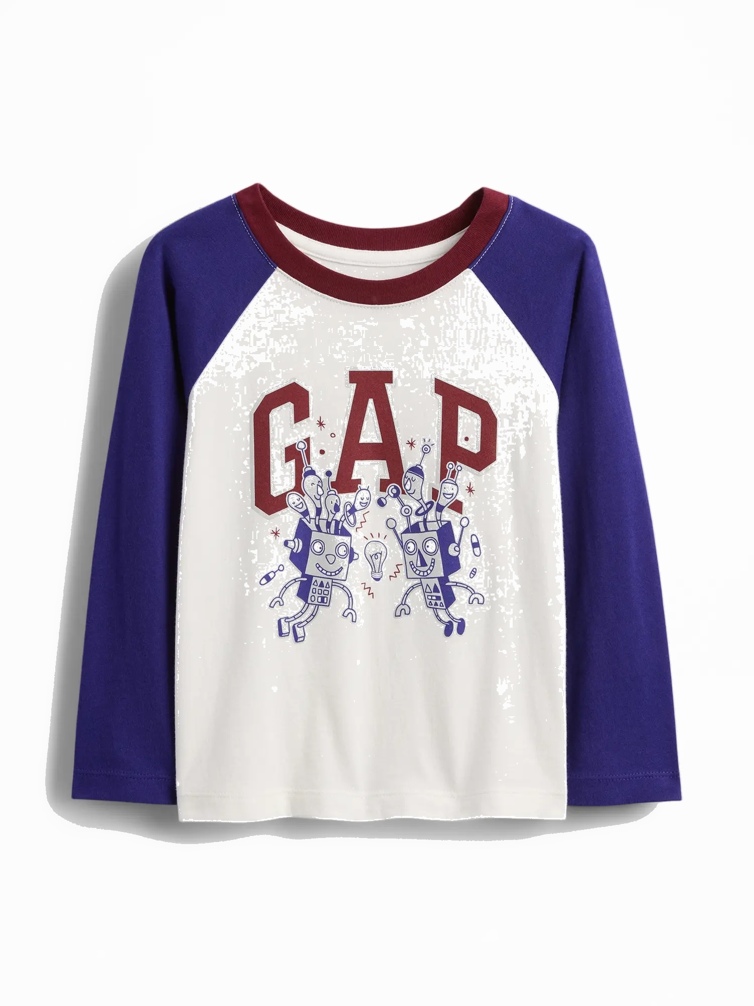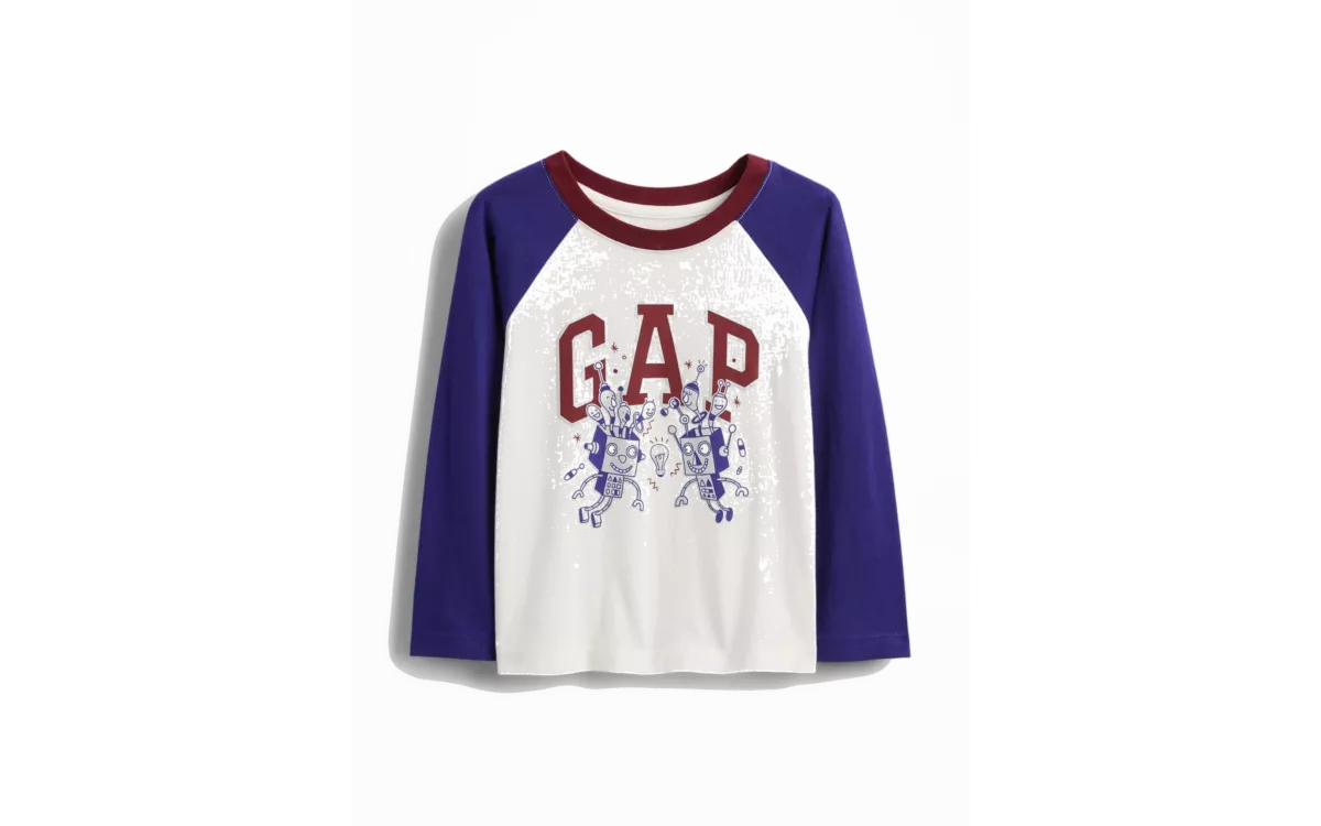 - Kerek nyakú, kontrasztos színű hosszú ujjú és a mellkason látható Gap logó.