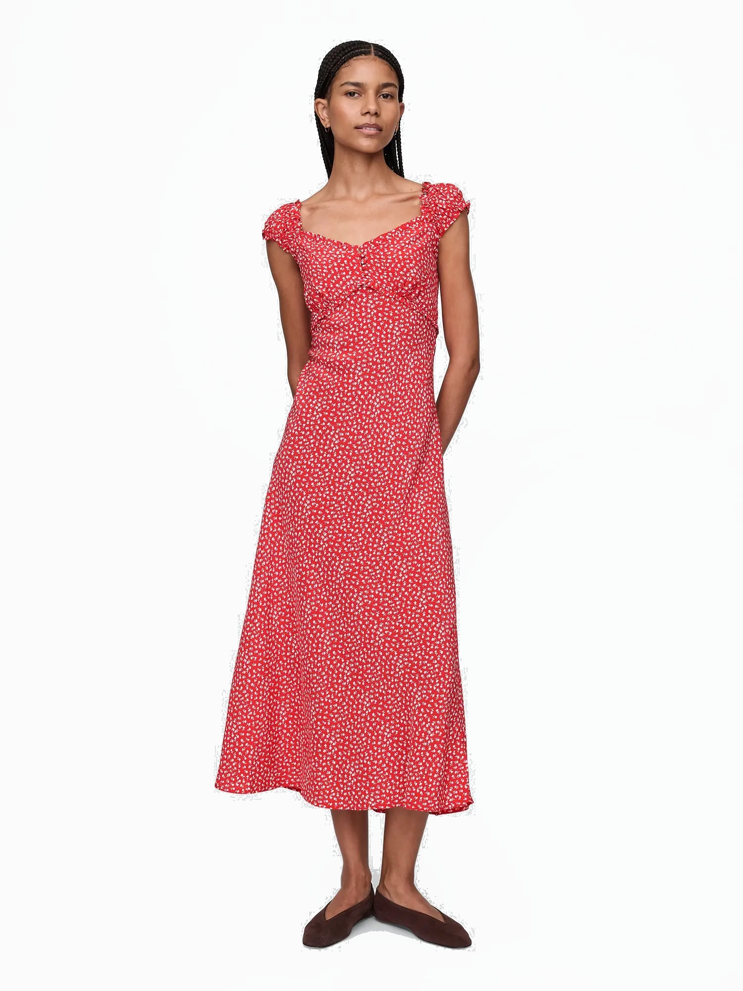 - A klasszikus fit & flare fazon testhez simul a melltartó környékén, és zökkenőmentesen átmegy egy a bokaig érő, bővülő szoknyába.